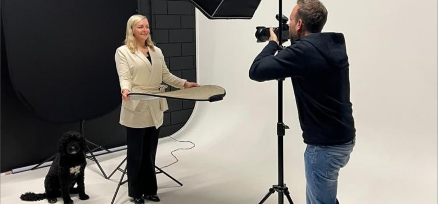 Tess en ik zijn aangekomen bij de fotostudio van Sjoerd fotografie in Deventer. In februari ben ik vijf jaar in dienst bij Seven Stars en dat betekent dat ik nieuwe foto’s mag maken voor onze website. Op onze teampagina gaan we op de foto met ‘iets’ wat bij ons past en ons typeert. En je raadt het waarschijnlijk al: dat is de reden dat Tess vandaag met mij mee is! Ze mag met mij op de foto aangezien ik een echte ‘hondenmama’ ben.